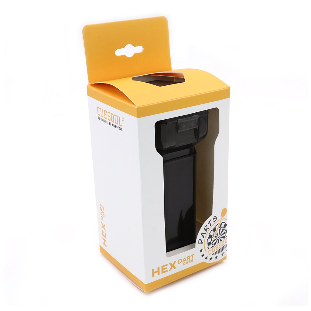 CUESOUL HEX masszív darts tok – hatszög, fekete egy strapabíró, hatszögletű tok, amely megbízhatóan védi a nyilakat és a tartozékokat az ütésektől és a sérülésektől. A kompakt, fekete kivitelű kialakítás ötvözi a védelmet és a modern megjelenést.