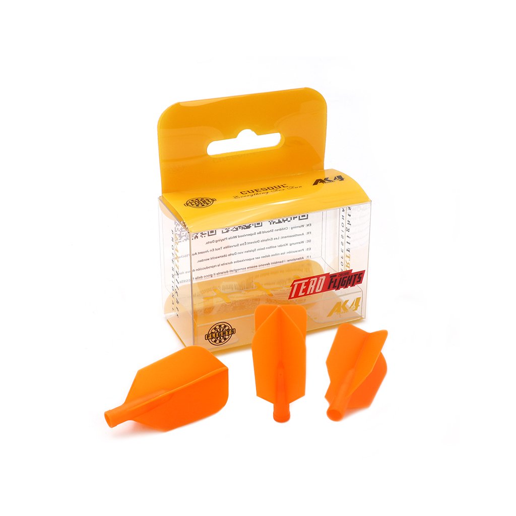 A TERO AK4 Slim Wing Dart Flight – narancssárga klasszikus Slim Wing formájú dart toll, amely gyors és egyenes repülést biztosít alacsony légellenállással. Ideális technikai játékosoknak és precíz játékstílushoz.