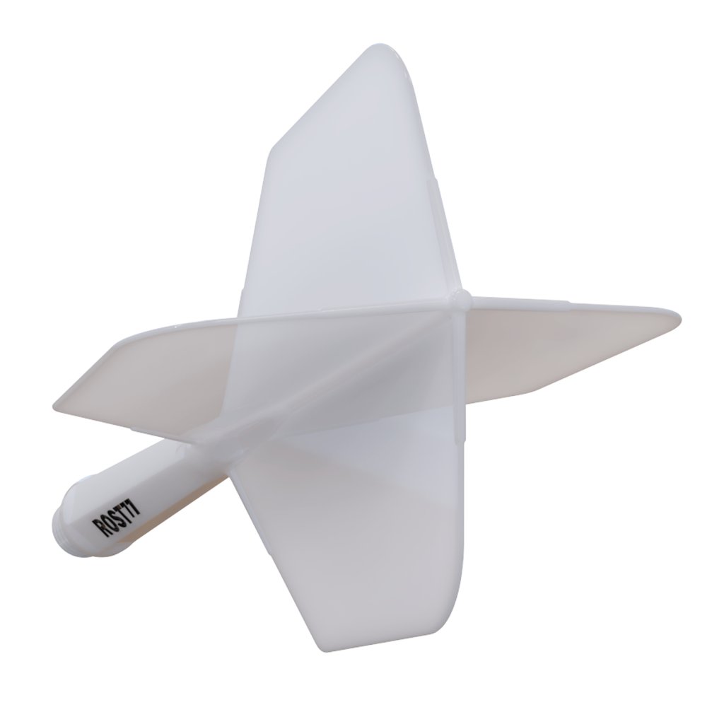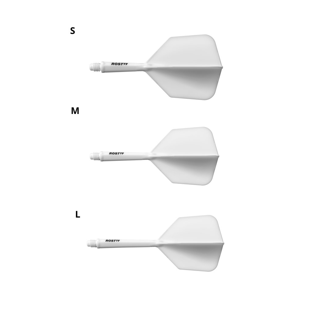 ROST 77 Nagy Szárny Integrált Darts Nyél és Toll – Fehér integrált tollak Big Wing alakú szárral. Maximális repülési stabilitást és irányíthatóságot biztosítanak, és S, M és L méretben kaphatók.