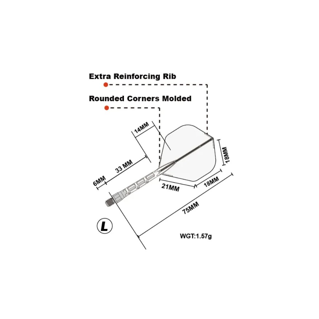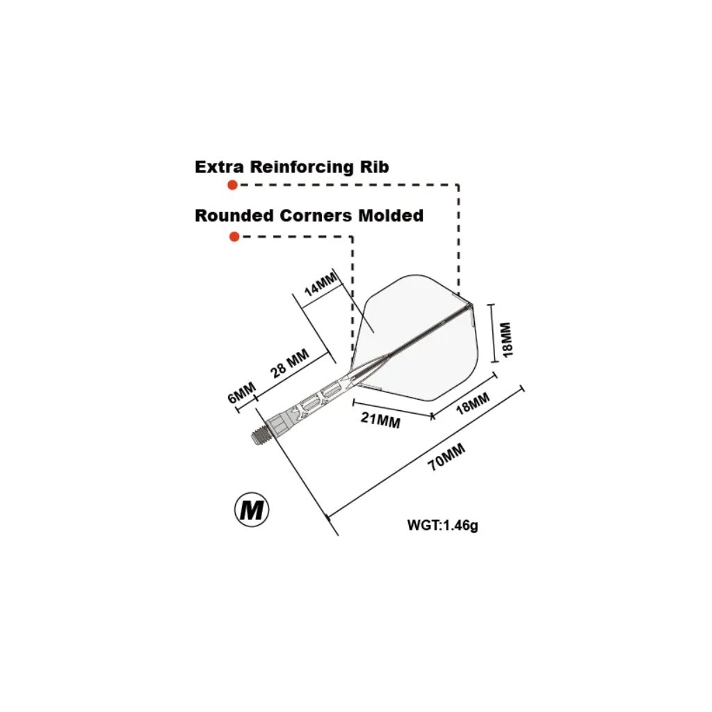 A szárnylapát és a szárat egyetlen egységként gyártják, ami csökkenti a kilazulás vagy a játék közbeni sérülés kockázatát. Az integrált rendszer növeli az alkatrészek élettartamát és egyszerűsíti a nyilak játékra való előkészítését.