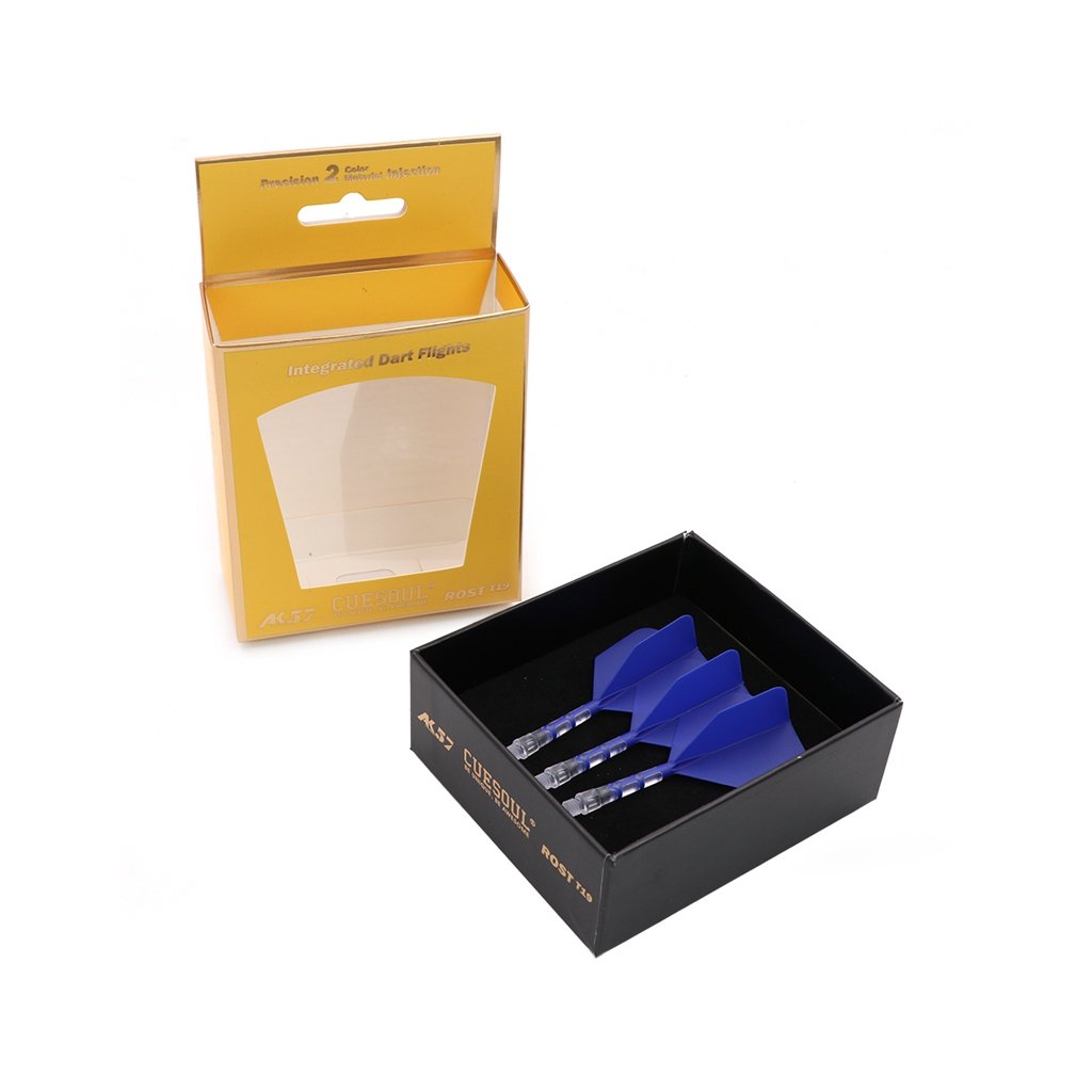 A ROST T19 Nagy szárnyú integrált dart tollak – kék integrált tollak átlátszó szárral, Big Wing (NO6) alakban. Maximális repülési stabilitást biztosítanak, és S, M és L méretben kaphatók.
