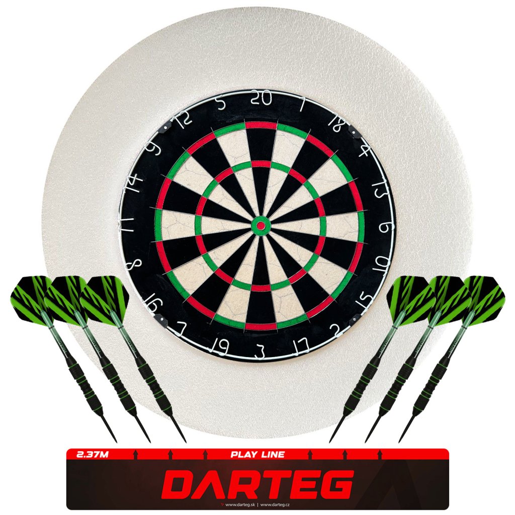 Teljes Darteg Starter darts készlet profi szizál táblával, védőgyűrűvel, két acél darts szettel és kiegészítőkkel az azonnali játékhoz.