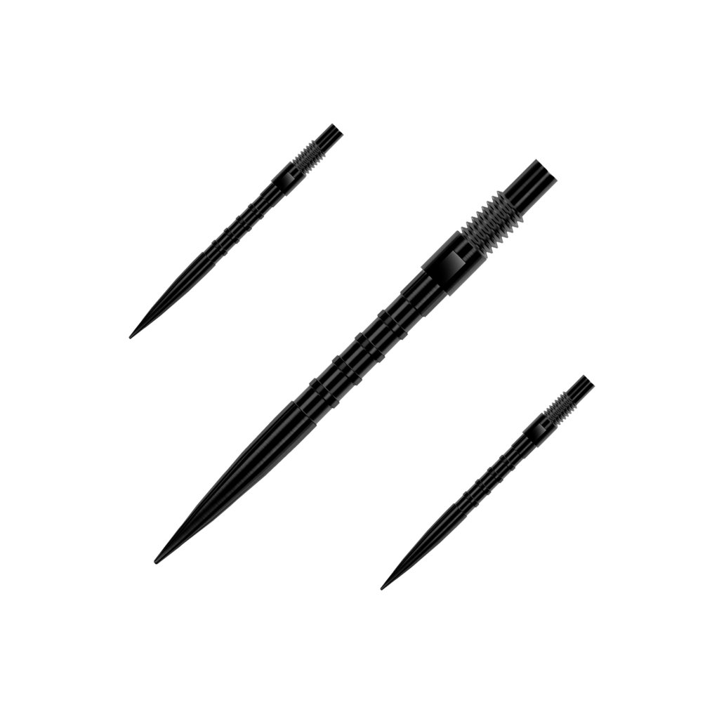 Harrows Quick Points Ryan Searle Heavy Metal Grip (fekete) acél hegyek, amelyeket Ryan „Heavy Metal“ Searle-lel együttműködve terveztek. Négyzet alakú gyűrűs vágásokkal rendelkeznek az ujjak biztos támaszkodási pontjához, és a Harrows Quick Point rendszernek köszönhetően gyors hosszváltást tesznek lehetővé.