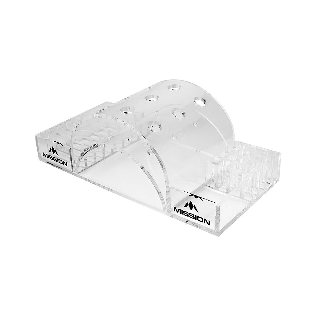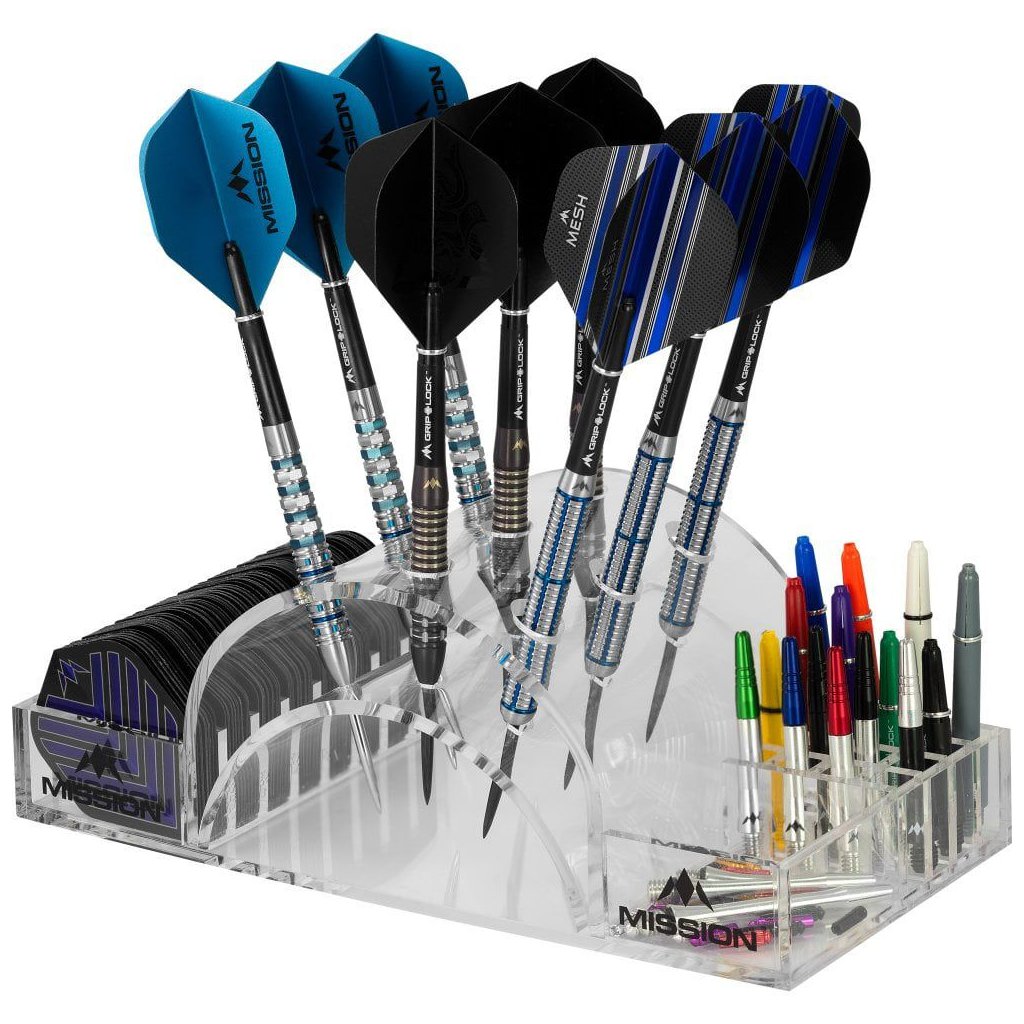 Mission Darts állomás 9 Darts Teljes Dokkolóállomás lenyűgöző, átlátszó dart tároló, amely a dartok tárolásának tökéletes megoldása. Ez a dokkolóállomás három teljes dart készlet tárolására alkalmas. Az átlátszó akril a Mission logóval együtt fantasztikusan néz ki, és további helyet kínál gyűrűk, tollak, hegyek, tollvédők és minden fontos darts tartozék számára.