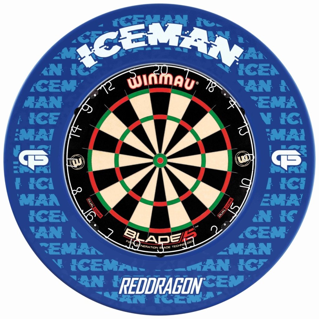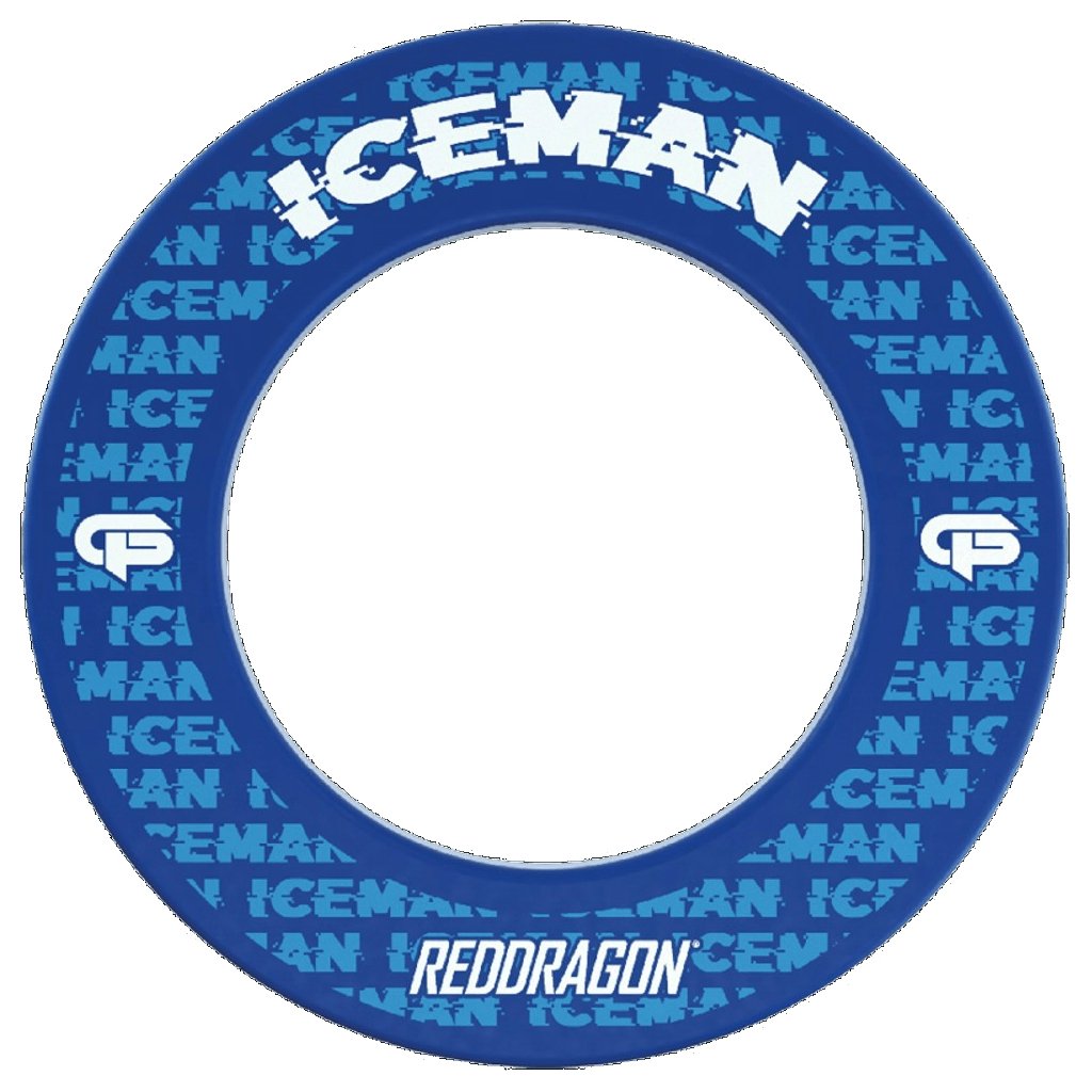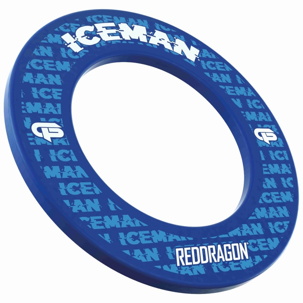 A Red Dragon Gerwyn Price "Iceman" védőgyűrű kék színű, és védi a táblát és a falat a sérülésektől. Minden klasszikus táblához alkalmas, külső átmérője 67,5 cm, belső átmérője 43,6 cm. A Red Dragon gyártó kiadása.