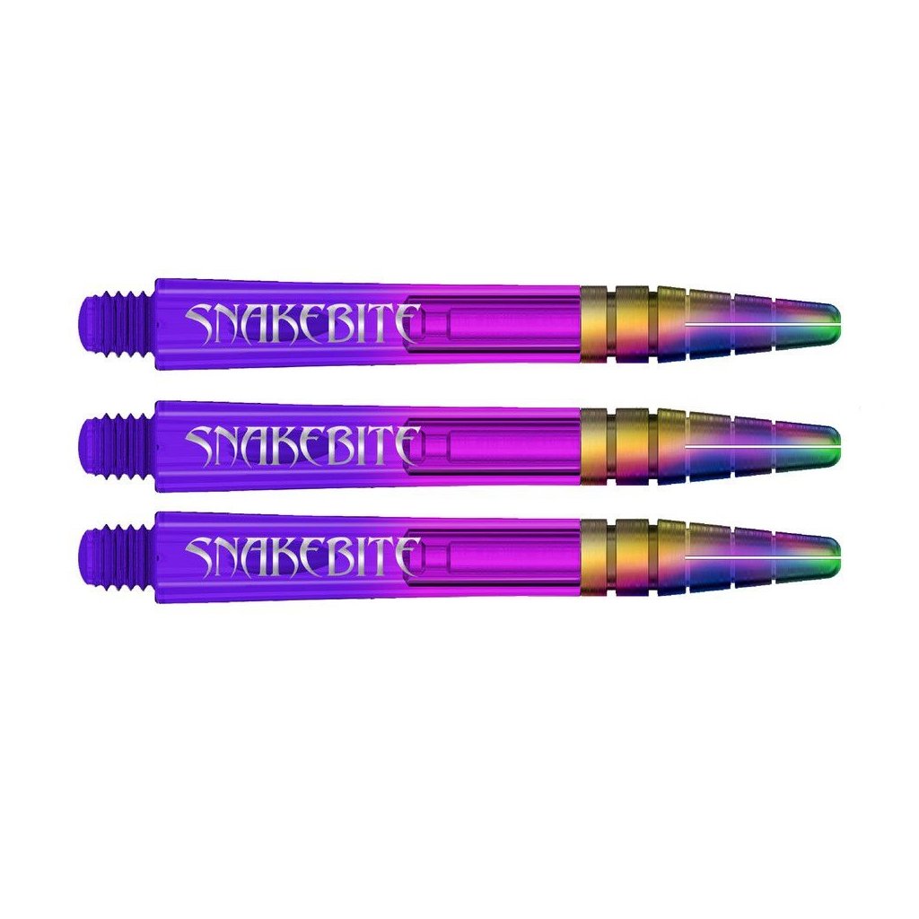 Peter Wright játékos standard 2BA menettel rendelkező nyilainak szárai, műanyagból - polikarbonátból, alumínium felső résszel, lila és szivárvány színekben, REDDRAGON2023 modellév.