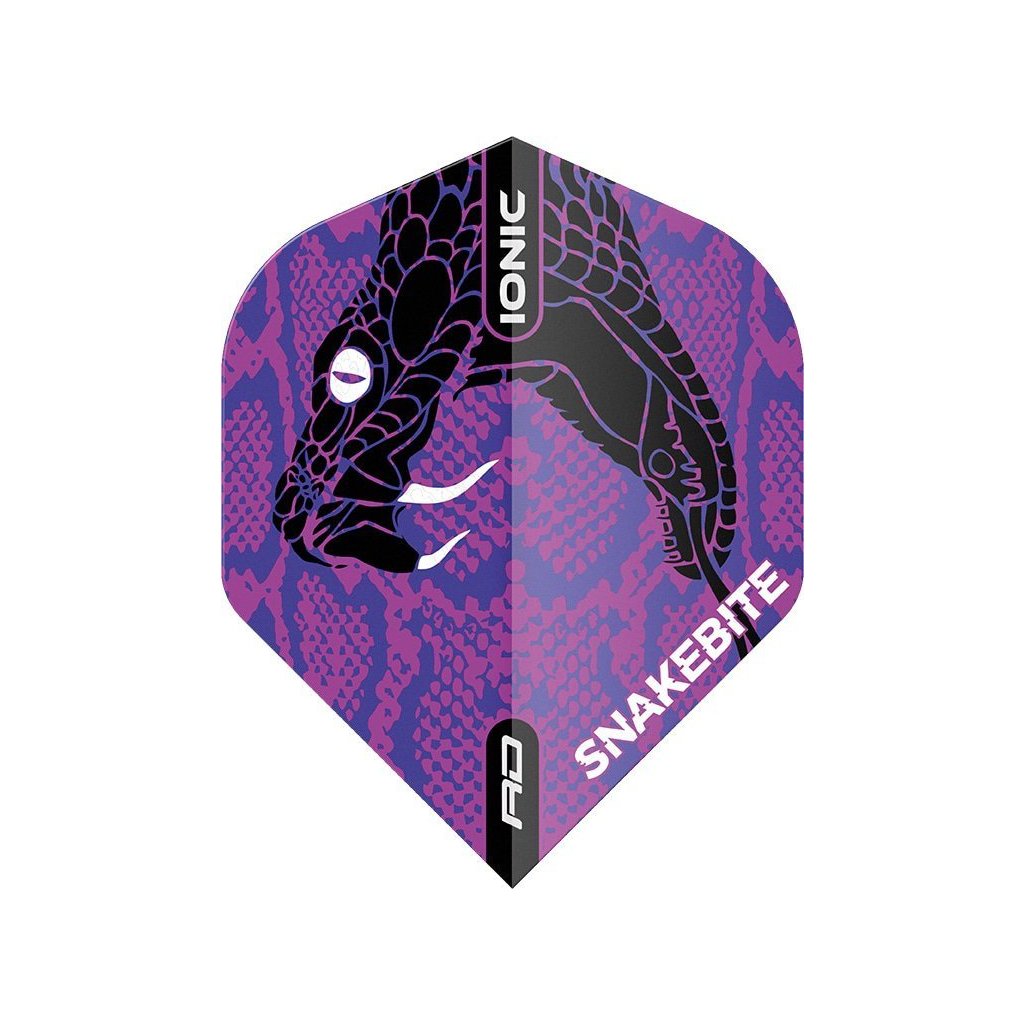 A Red Dragon kemény Peter Wright tekercselt kígyó tollak normál formában, lila-fekete dizájnnal és 100 mikron vastagsággal stabil és lassabb repülési pályát kínálnak.