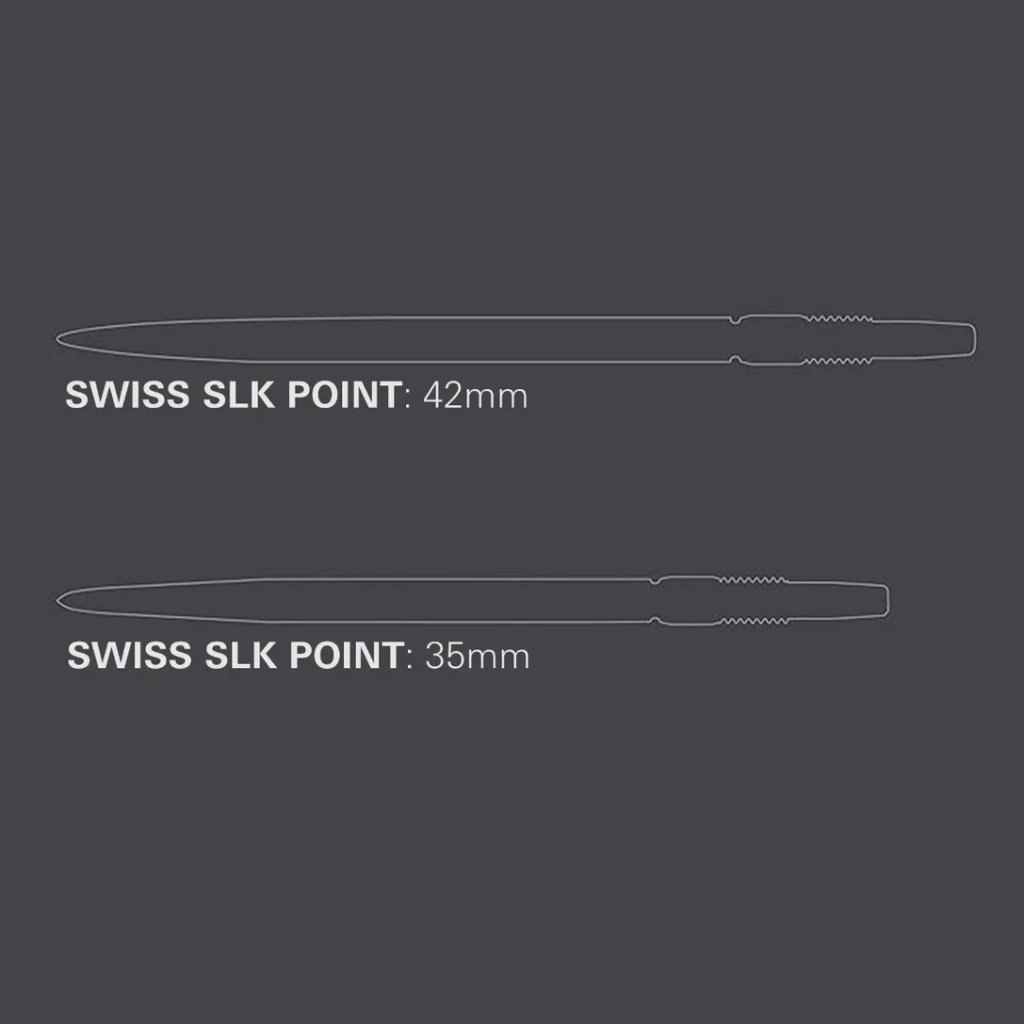 Az acél Target Swiss Point SLK hegyeket kifejezetten azoknak a igényes játékosoknak fejlesztették ki, akik a megbízhatóság, tapadás és pontosság kombinációját keresik. A fejlett csiszolási eljárásnak köszönhetően a hegyek durva textúrával rendelkeznek, amely csökkenti a tábláról való lepattanást és kiváló stabilitást biztosít a dobás során.
