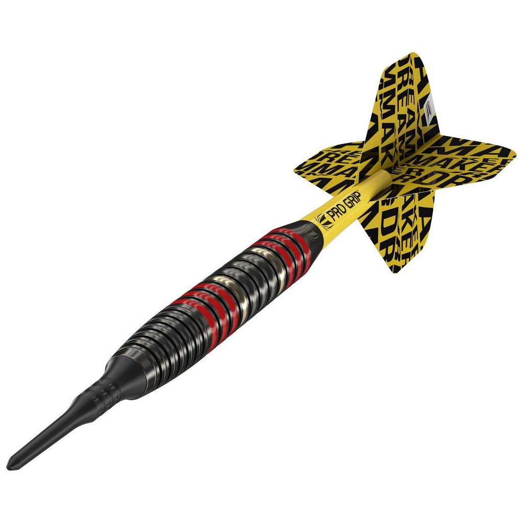 Ez a puhahegyű nyílkészlet, amelyet a "The Dreammaker" néven ismert játékos ihletett, ideális azok számára, akik minőségi és stílusos nyilakat keresnek. Minden nyíl teste összetett barázdákkal rendelkezik a jobb fogás érdekében, és piros valamint arany csíkok díszítik. - Széles tartozékválasztékot tartalmaz a személyre szabáshoz. - Sárga Pro Grip szárakkal és Pro.Ultra No2 tollakkal felszerelve. - Speciális nyíltokkal szállítva. - Az alkatrészek között fekete műanyag Pixel hegyek találhatók.Csomag tartalma