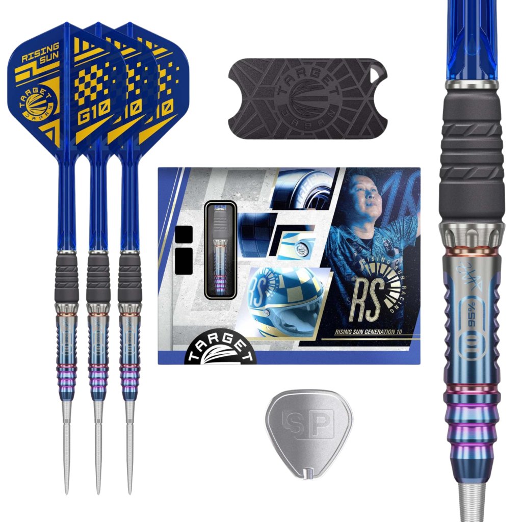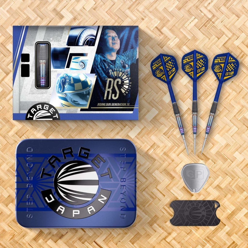 Target Japan The Rising Sun Gen10 95% prémium acél darts nyilak, amelyeket Haruki Muramatsu japán darts sztárral együttműködve fejlesztettek ki. A versenysport autók precizitása által ihletve kiváló fogást, kiegyensúlyozottságot és maximális kontrollt biztosító Swiss Point technológiát kínálnak.
