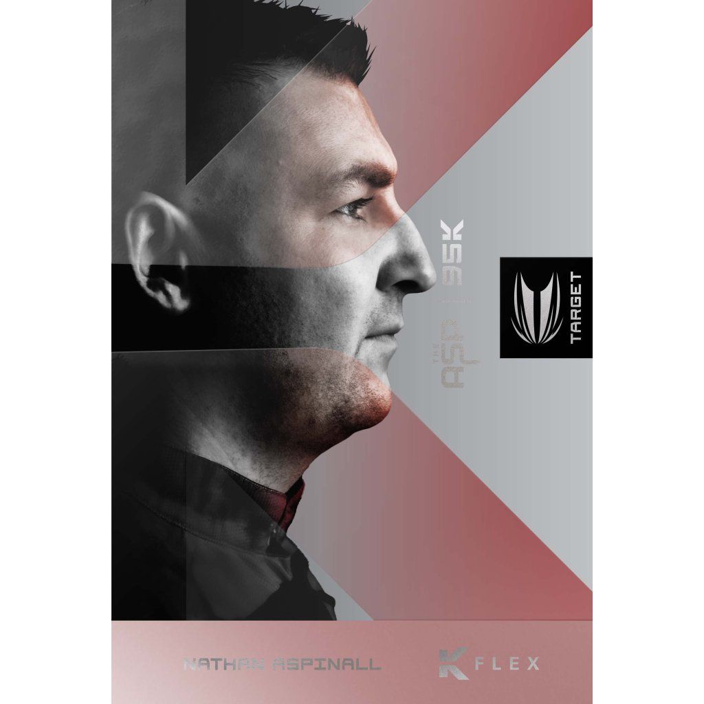 Acél Target Nathan Aspinall 95K dartsnyilak, 95% wolfram. Minőségi kiadás fekete PVD bevonattal és K-Flex repülőkkel.