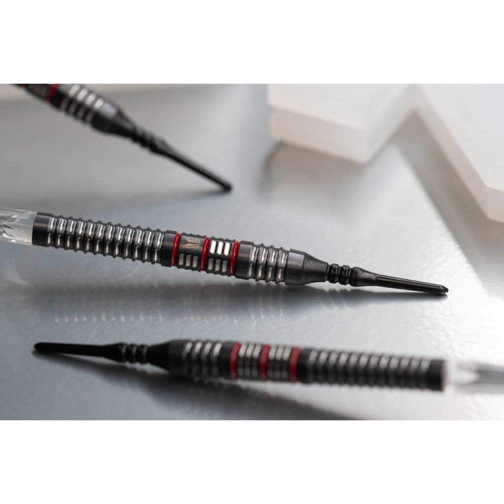 A nyilak fekete Pixel Tips hegyekkel vannak felszerelve, amelyek a mikro-grip technológiának köszönhetően biztos tartást garantálnak a táblán, és csökkentik a kipattanások számát. Tartoznak hozzá titánium konverziós hegyek (30 mm), amelyek lehetővé teszik a könnyű átmenetet a soft tip és a steel tip formátumok között. A csomagban prémium Swiss Point szerszámot is talál, amely gyors és biztonságos hegycserét biztosít.