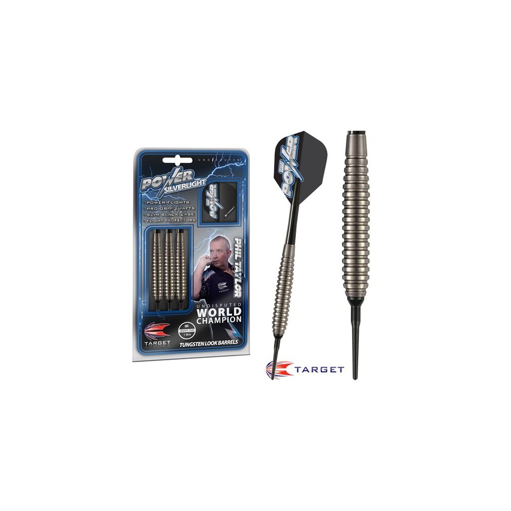 Ez a TARGET soft Power Silverlight 18 g-os készlet a legendás Phil „The Power” Taylornek van ajánlva. Ideális dartsrajongóknak és -kedvelőknek, minőségi kivitelével és dizájnjával. Minden szett praktikus tokkal és tollvédő kupakokkal érkezik.