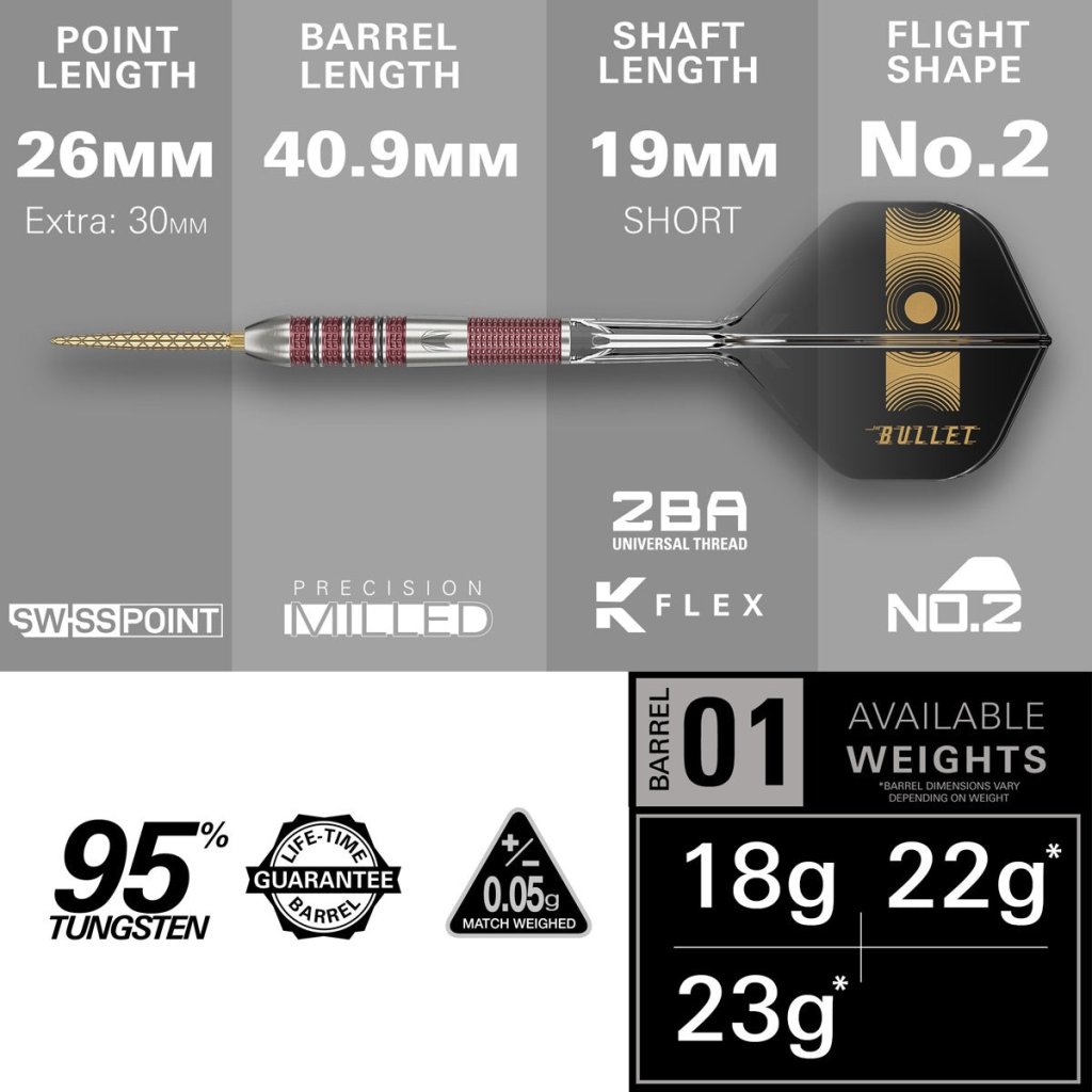 Ezek a nyilak maximális pontosságra, stabilitásra és dobás közbeni kényelemre lettek tervezve. A magas volfrámtartalomnak és az olyan technológiáknak, mint a Swiss Point és a K-Flex, köszönhetően csúcsteljesítményt nyújtanak az igényes játékosok számára is.