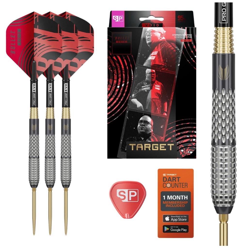 Stephen Bunting Generation 5 Void 95% a World Masters 2024 győztese, Stephen Bunting szoros együttműködésével jöttek létre. Ez a modell tökéletesen tükrözi nyugodt viselkedését, technikai pontosságát és fáradhatatlan képességét a nyomás alatt való pontozásra. Az ötödik generáció kiterjedt tesztelés és részletes finomhangolás alapján jött létre, hogy maximális konzisztenciát, kontrollt és magabiztosságot biztosítson a dobás során.