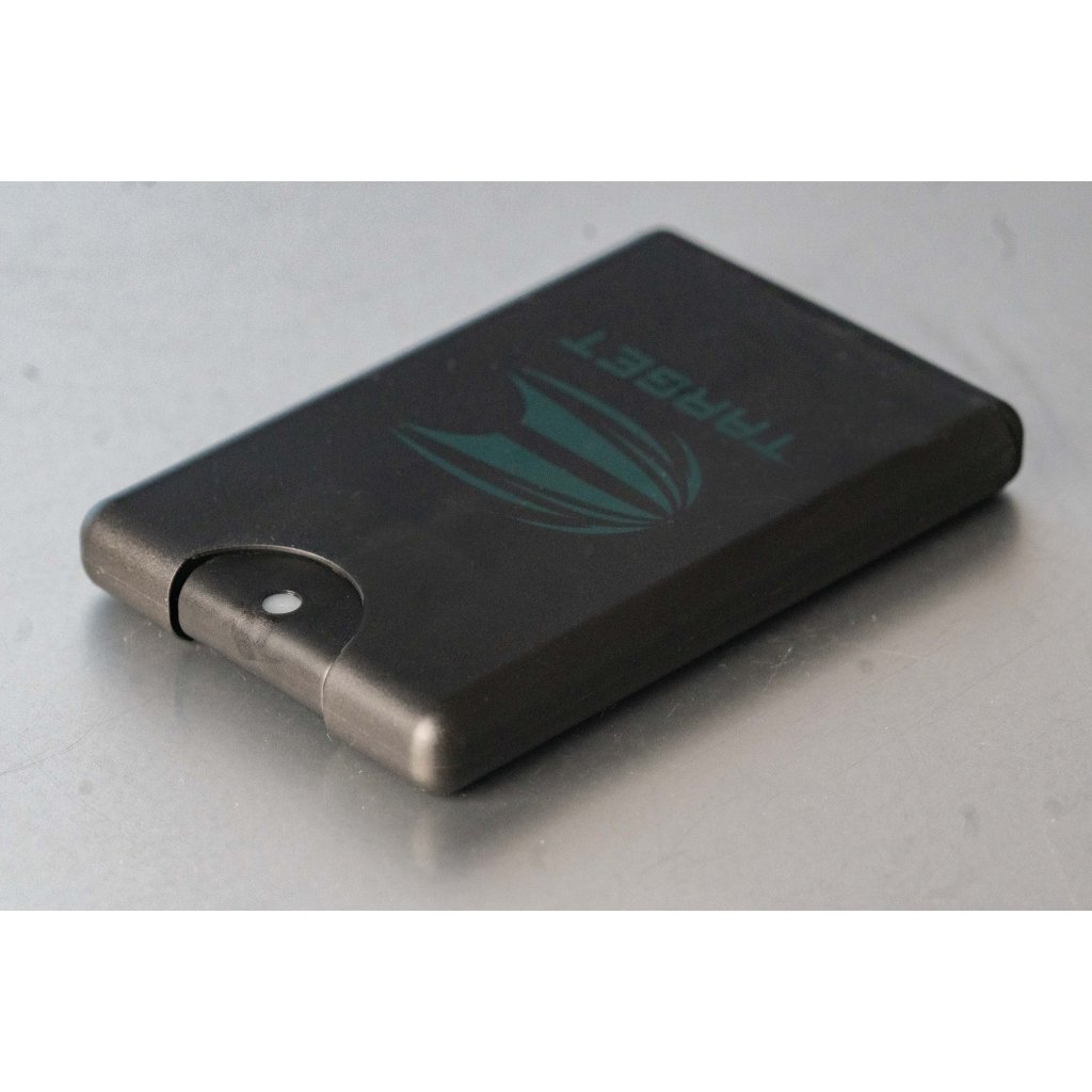 Target Darts szervizkészlet fém köszörűvel, dupla tisztítókefével, tisztító spray-vel és flanel kendővel, egy masszív fém dobozban, bevonat nélküli nyilak egyszerű karbantartásához.