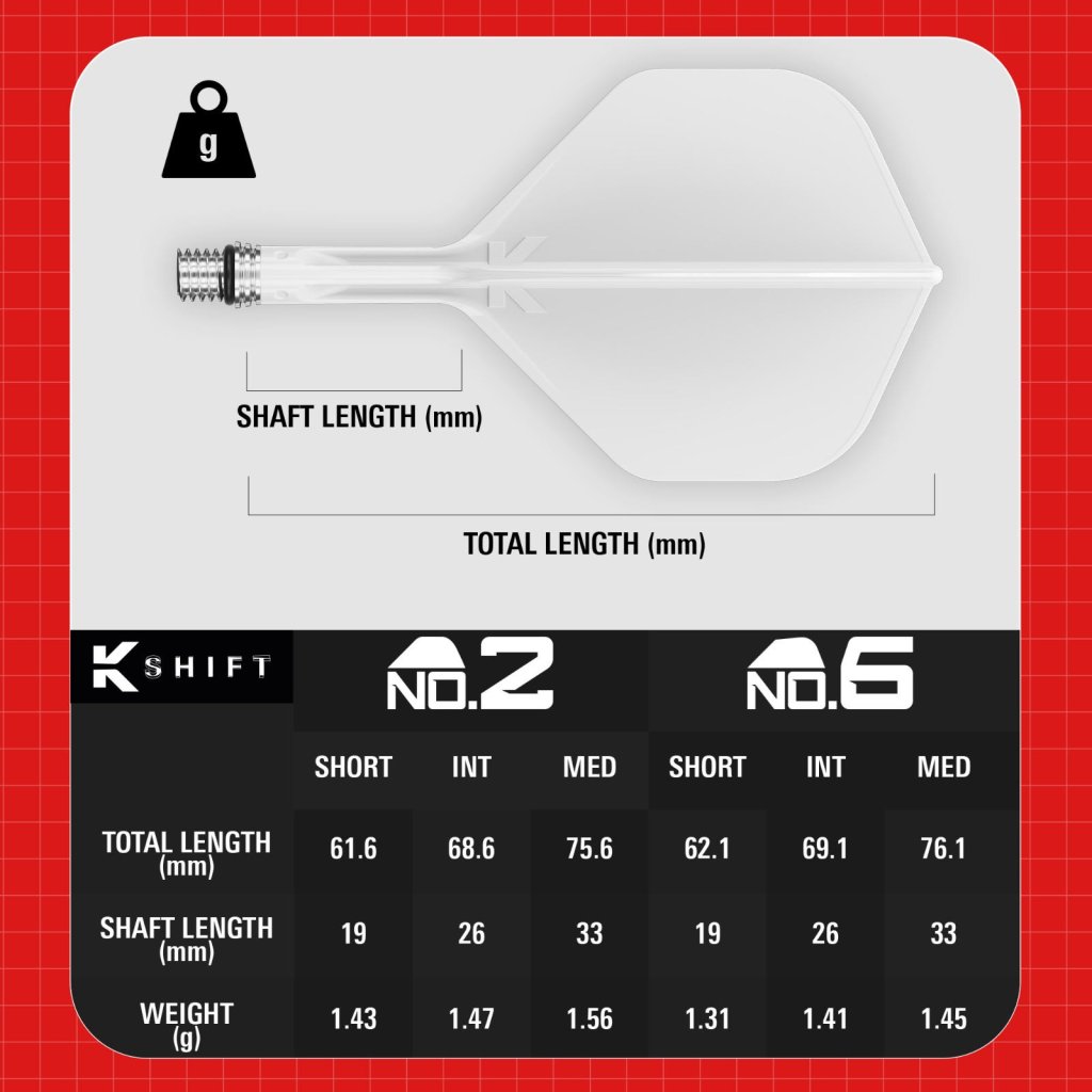 Target K-Shift White Flight STD / No.2 egy új generációs integrált tollak és szárak képviselője, amelyet a darts visszapattanásának aktív csökkentésére és a stabil dobások fenntartására terveztek, még szoros csoportosítások esetén is. A K-Shift rendszer az elismert K-Flex technológiára épül, és a nyíl repülésére negatív hatás nélkül, kontrollált mozgást biztosít az ütközéskor.