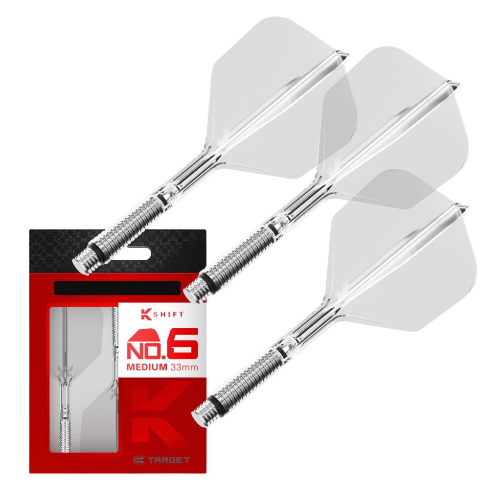 Target K-Shift Clear Flight Shape No.6 az integrált flightok és szárak új generációját képviseli, amelyet az aktív pörgettyű-visszaverődések csökkentésére és a stabil dobások megőrzésére terveztek, még szoros csoportosítások esetén is. A K-Shift rendszer az elismert K-Flex technológiára épül, és a nyíl repülésére negatív hatás nélkül, kontrollált mozgást biztosít az ütközéskor.