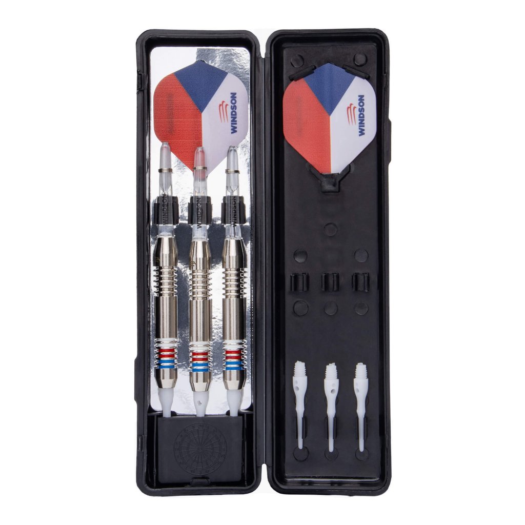 Ez a szett dizájnja a cseh trikolór által inspirált, ami egyedi és hazaszerető megjelenést kölcsönöz neki. Ideális ajándék cseh játékosoknak vagy darts rajongóknak, akik játék közben is szeretnék kifejezni nemzeti büszkeségüket.