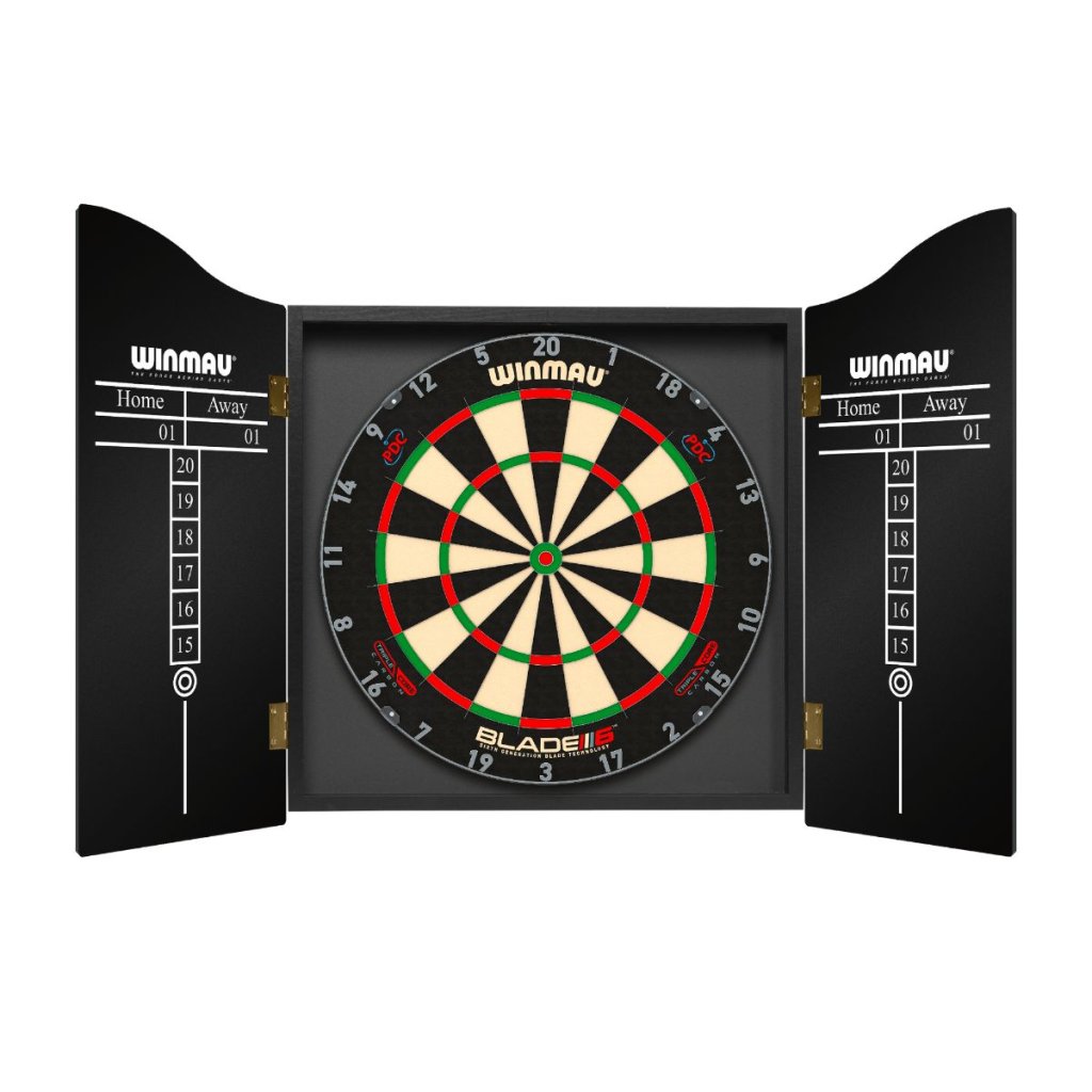 Winmau Man Cave nyílszekrény, fekete Ez a szabványos méretű szizál táblákhoz való szekrény stílusos és praktikus megoldás a tárolásukra.