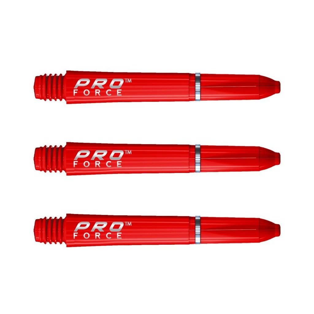 Winmau Pro Force piros, rövid darts tengők rugalmas rögzítő rendszerrel és a szárak rögzítésére szolgáló gyűrűkkel. Műanyagból készültek, és 3 darab tengőt tartalmaz a csomag. Gyártó: Winmau.