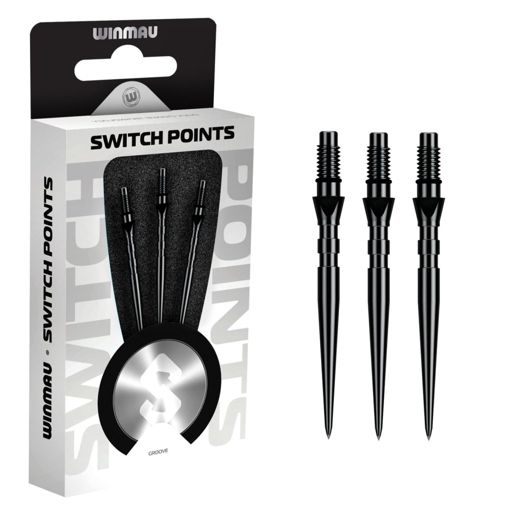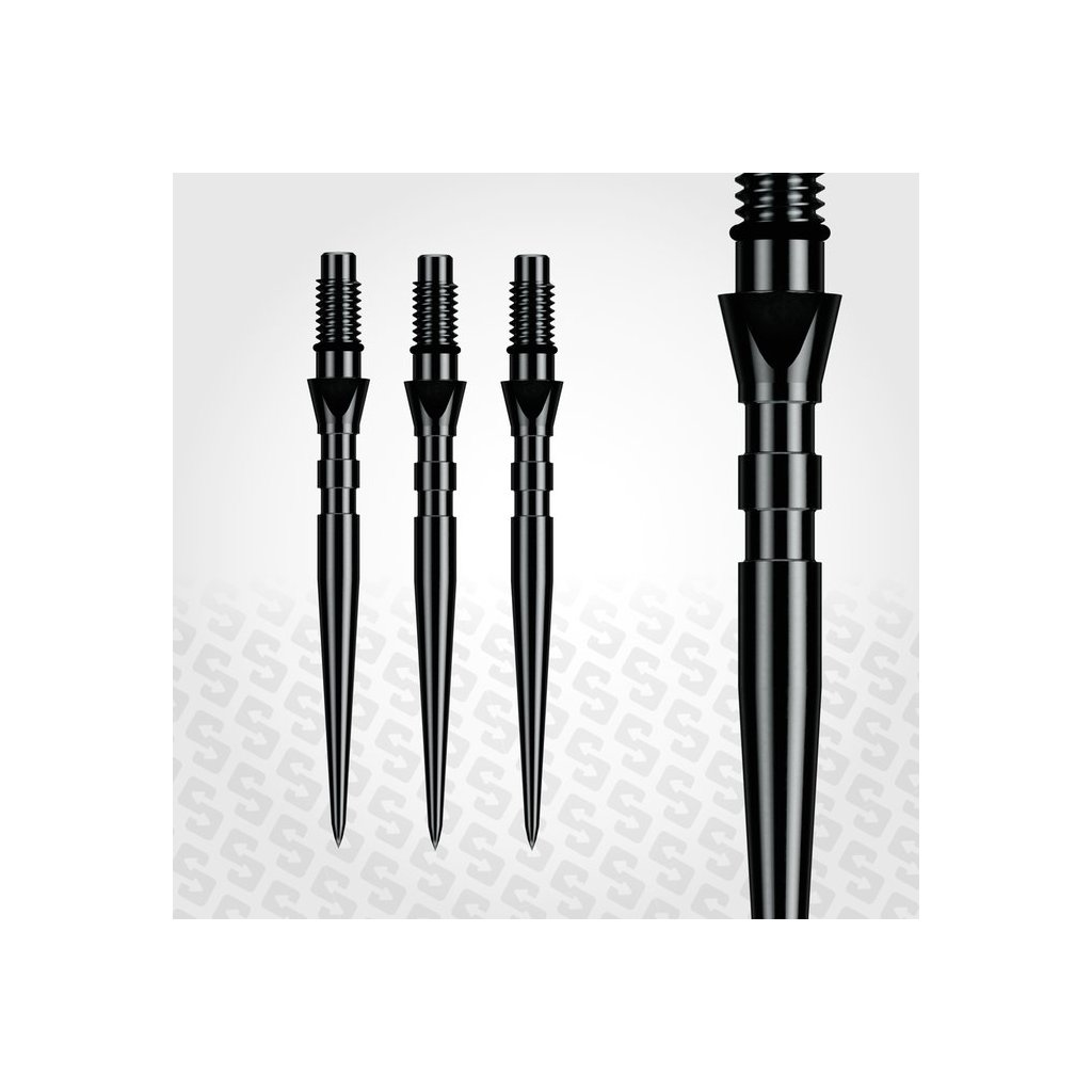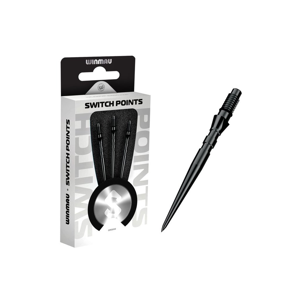 SWITCH POINT GROOVE BLACK minőségi acélhegyek azoknak a játékosoknak, akik gyorsan szeretnék cserélni a hegyeket, beállítani a nyíl hosszát és javítani a stabilitást a táblán. A recézett felület növeli a súrlódást becsapódáskor, és segít csökkenteni a nyíl kiesésének kockázatát.